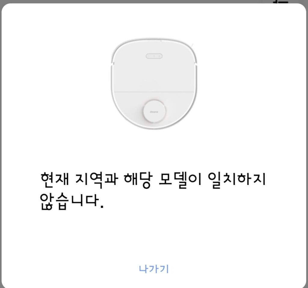 저는 지역 설정을 변경하지 않았음에도 로봇청소기가 정상적으로 등록되었습니다.